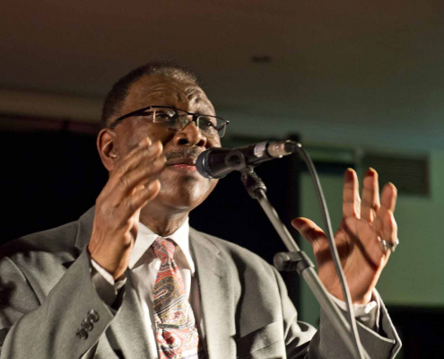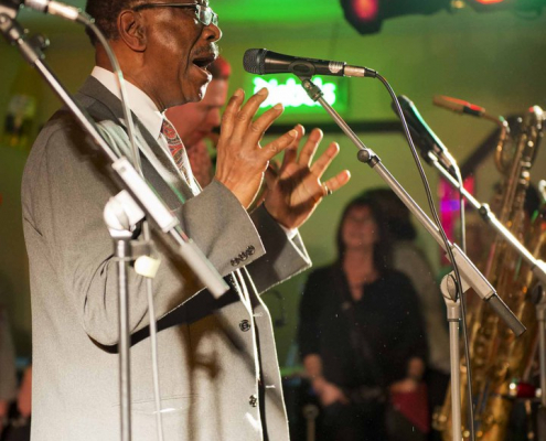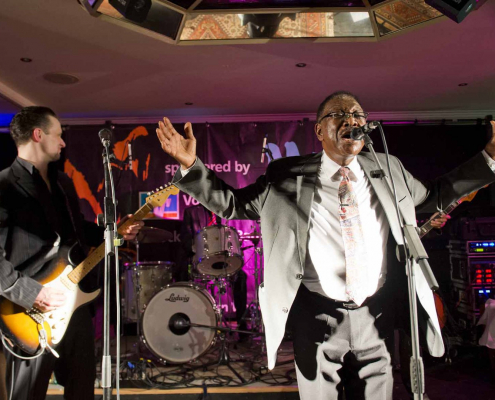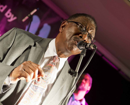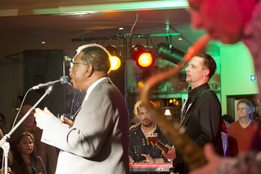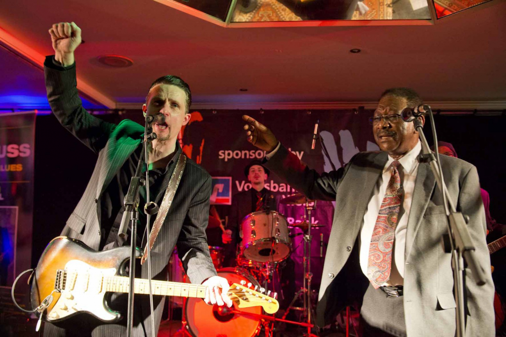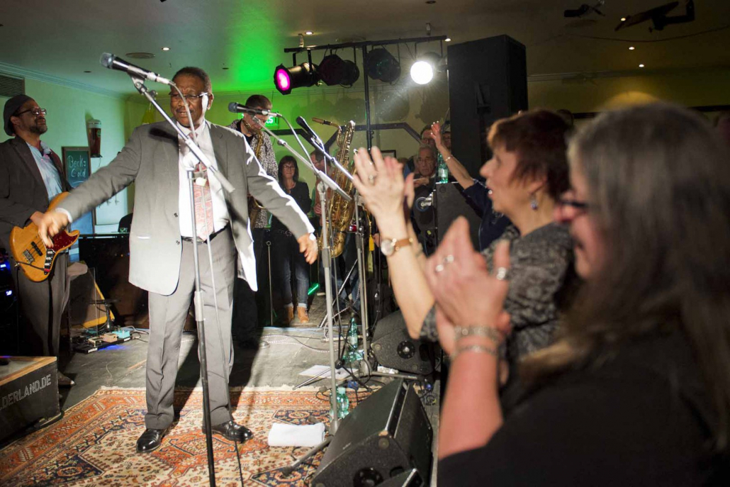 woraufhin nach Song 7 wieder Tommie Harris die Bühne betrat und mit der Kai Strauss Band an seiner Seite zwei weitere Luther Allison Klassiker vorstellte : “Why I Sing the Blues” und “Sweet Sixteen”. Zur Überraschung des begeisterten Publikums schloss Tommie Harris Set 2 mit seiner Interpretation von Little Richard’s all-time classic “ Lucille” ab, bevor er als stürmisch verlangte Zugabe noch einen weiteren Luther Allison Blues drauf packte, der die Konzertdauer über die Mitternachtstunde hinaus verlängerte.