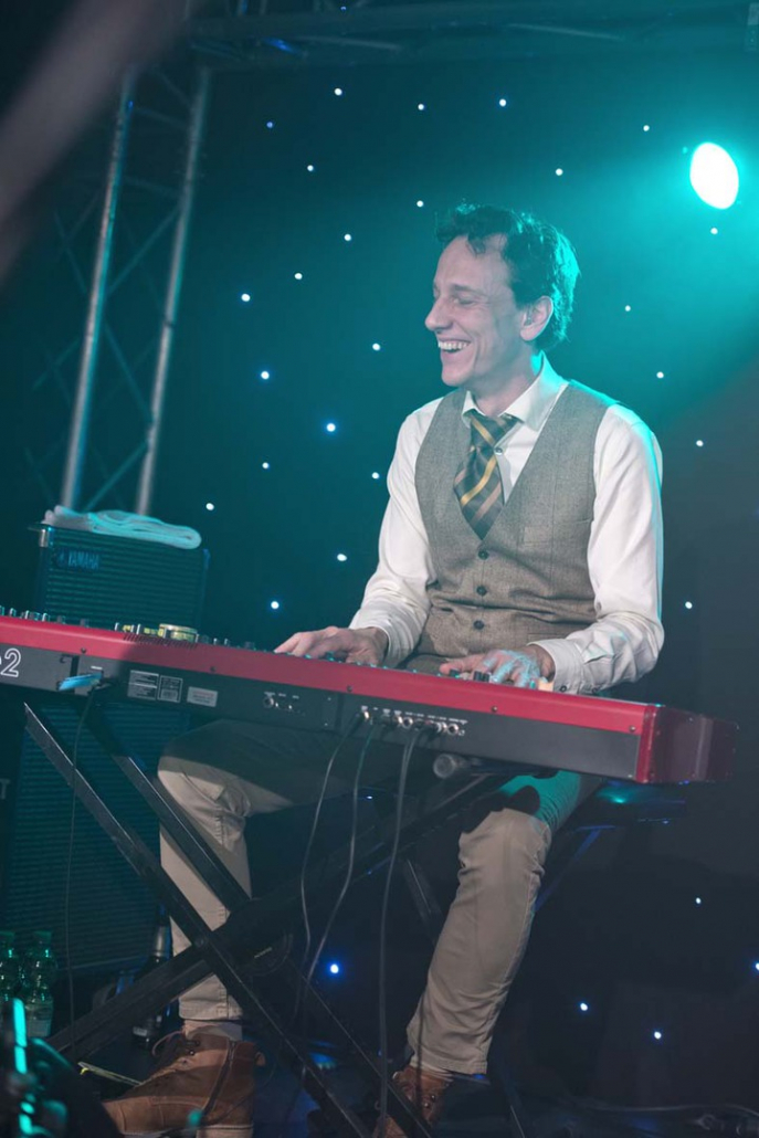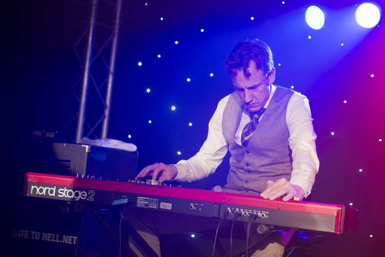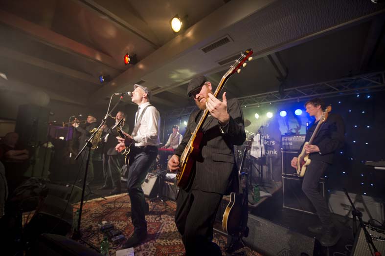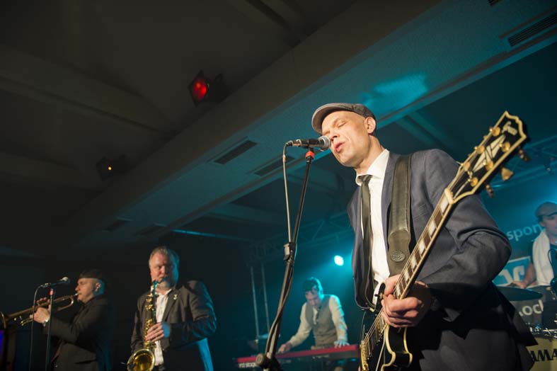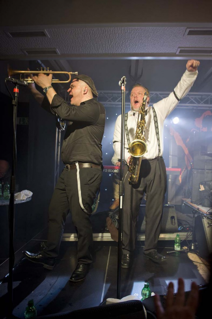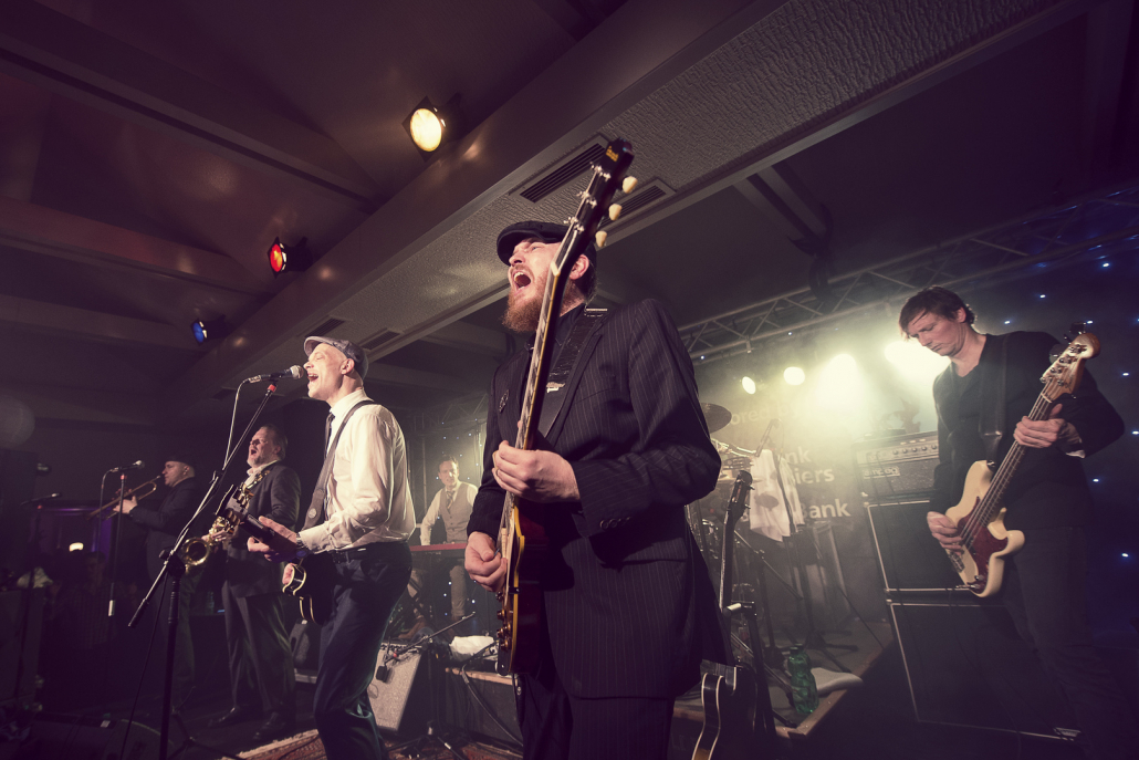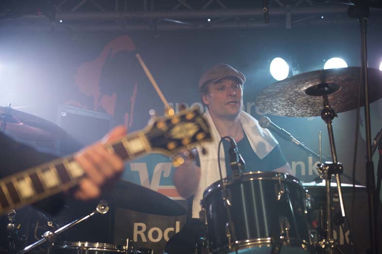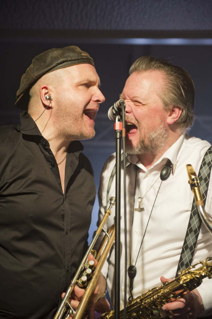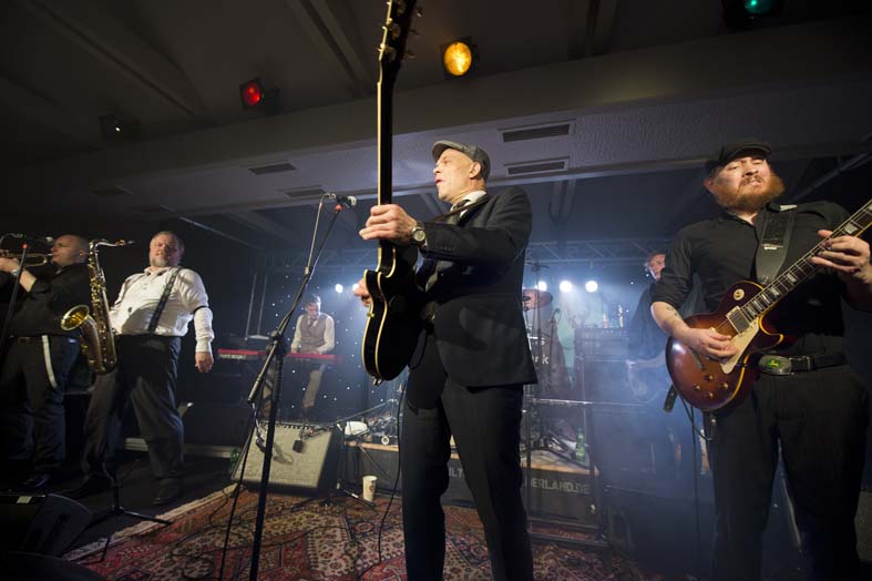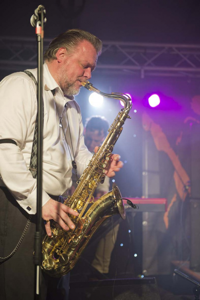 Reminiszenzen an Canned Heat und Ten Years After heraus hören. Vor allem Emil Balsgaard am “Nordstage 2” E-Piano ist für Exkurse in den Boogie – Rhythmus verantwortlich, reitet aber auch genau so gerne über seine Hammond – Funktion in den Rhythm and Blues hinein. Wenn sich die Bläser – Sektion Hans Nybo (Saxophon) und Peter Kehl (Trompete) in den Vordergrund schiebt, gibt es schon einmal Anklänge an den Jazz-Rock. Peter Skjerning an der Lead Guitar ist eine kongeniale Ergänzung zu seinem “Nebenmann” Thorbjørn Risager, der auch gerne Gesangsparts übernimmt und gelegentlich ein kleines, aber feines Gitarrensolo einfliessen läßt. Søren Bojgaard mit seinem pulsierenden Bass und Martin Seidelin mit seinem varaiablen, aber auch enorm druckvollen Schlagzeugspiel brachten regelmäßig den Saal und das Publikum zum Beben, wenn sie mit ihren Instrumenten das musikalische Geschehen an sich rissen.