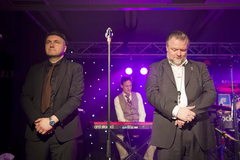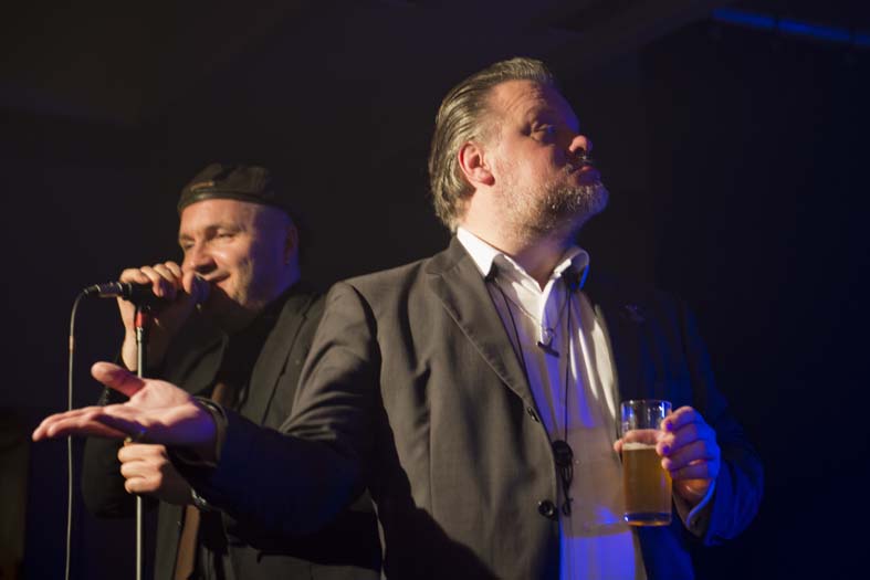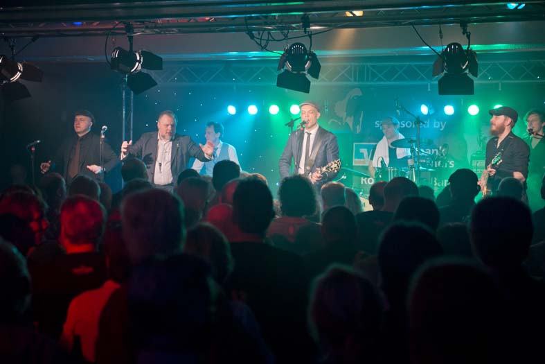 genügend Freiraum läßt, um sich adäquat in das Musikgeschehen auf der Bühne einzubringen, was sich nicht nur auf die verschiedenen Instrumente und Gesangsanteile bezieht, sondern auch auf die Ansagen und die intensiv gepflegten verbalen Interaktionen mit dem Publikum, das mit anerkennendem Sonderbeifall darauf reagierte. So übernahm jeder der 7 Dänen im Verlaufe des fast zweieinhalb Stunden lang dauernden Konzerts mindestens eine Ansage bzw. Publikumsansprache, und dies auch in einem durchaus kommunikativen Deutsch, charmant gefärbt durch einen mal stärker, mal dezenter ausfallenden skandinavischen Akzent.