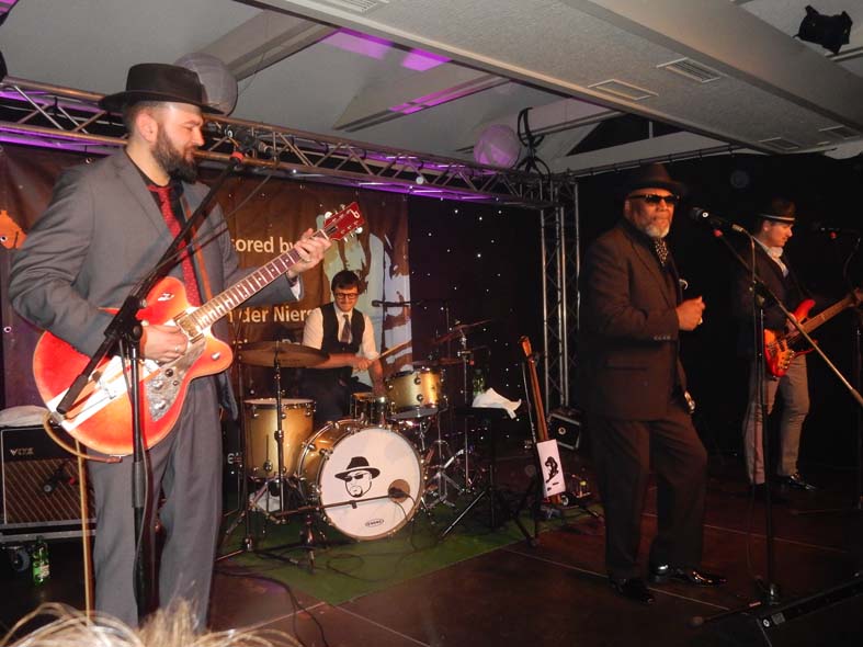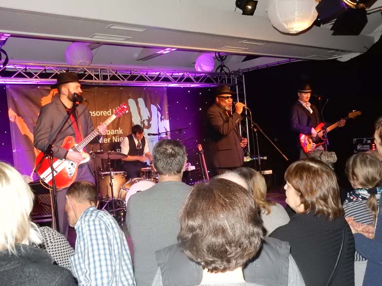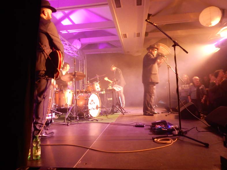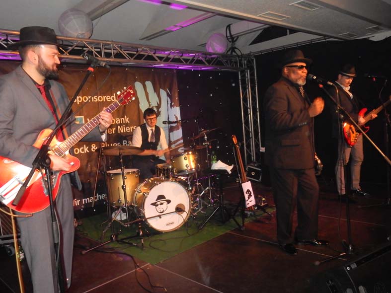 Mit seiner Erfahrung von 35 Jahren in der Blues Szene hat sich Big Daddy Wilson ein enorm breites Spektrum von Rhythm & Blues und Artverwandtem aufgebaut, und daran ließ er sein begeisterungsfähiges Gelderner Publikum in reichem Maße teilhaben, was sich vor allem in der 2.Hälfte seines Auftritts auswirkte. Den Konzertauftakt bildete Wilson zunächst alleine mit Cesare Nolli an der Gitarre, indem er den „work song from Cherokee County“ anstimmte, in den dann nach und nach Paolo und Nik einstiegen und das Tempo und den Beat verschärften. In den folgenden Stücken des ersten Teils bildete sich der typische Sound dieser Band heraus, der vom Wechselgesang Wilsons mit seinen drei Instrumentalisten lebte, die allesamt mit Gesangsmikrofonen ausgestattet waren und gelegentlich auch mal die Gesangsführung übernahmen. Mit Ausnahme des Traditionals vom Konzertbeginn dominierten hier Wilsons Eigenkompositionen.