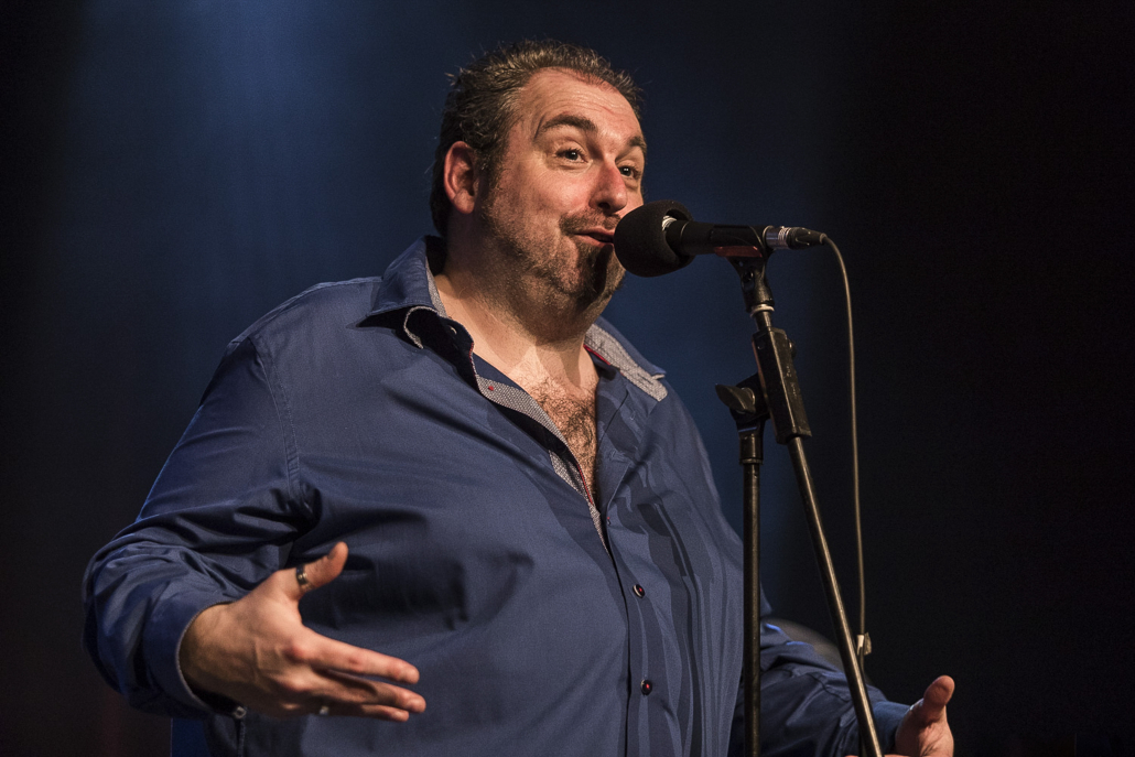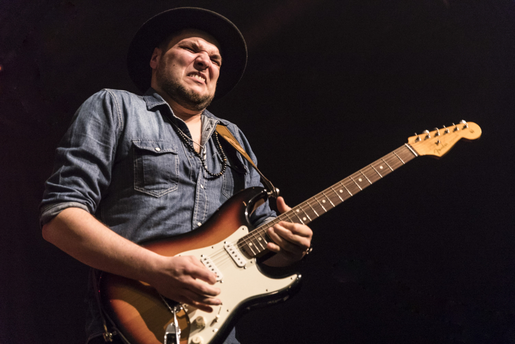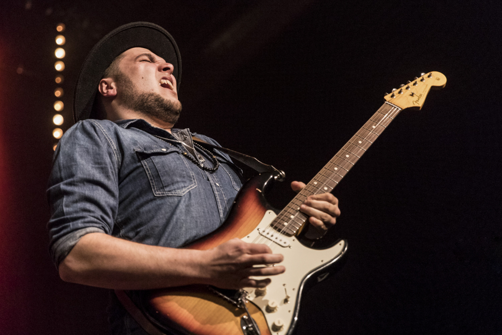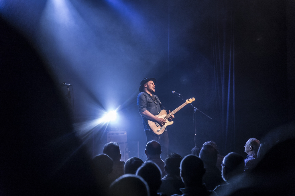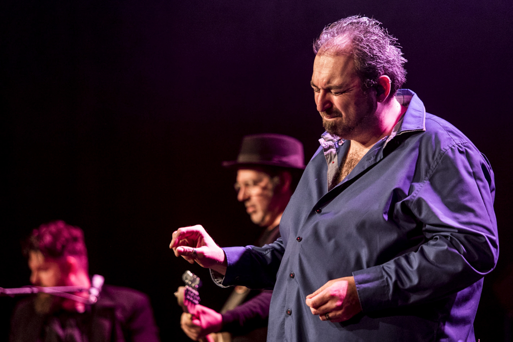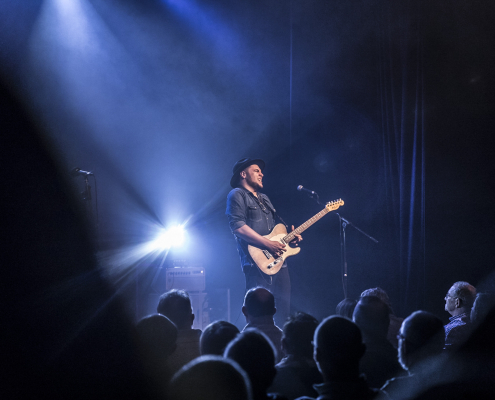Ihre Bandgeschichte ist schon etwas länger, es gibt die BluesBones bereits seit 2012. In diesen elf Jahren haben sie schon 6 Alben produziert, ihr 7. Album (“Unchained“) wird im April dieses Jahres erscheinen. Als Single – Auskopplung ist “Chain Gang“ vorgesehen, und dieses Stück stellten sie im Verlaufe des heutigen Abends vor. Als Premiere in Geldern, wie Nico de Cock am Mikrofon noch mal besonders betonte. Die BluesBones bestritten am heutigen Abend zwei 60 – minütige Auftritte, unterbrochen durch eine kurze Pause. Da sie genügend Zeit zur Verfügung hatten, konnten sie dem Publikum ihre gesamte Bandbreite der Spielarten des Blues vorstellen. Es dominierte die Stimme und die Gestik des charismatischen Sängers und Bandleaders Nico de Cock, der gelegentlich mal in den Hintergrund trat, um seinen Mitstreitern an den Instrumenten die Bühne zu überlassen. Hierbei beeindruckten Edwin Risbourg und Stef Paglia, die in einem Frage- und Antwortspiel zwischen Hammond Orgel und Gitarre das Publikum zu einem stürmischen Zwischenbeifall hinreißen konnten. In Stücken wie “Demon Blues“ und “Romance for Rent“ stellte Edwin Risbourg eine unglaubliche Fingerferigkeit an den Manualen seiner Hammond Orgel unter Beweis, und Stef Paglia wechselte im Verlauf seines Auftritts zwischen seinen 4 Gitarren hin und her, um den wechselnden Sounds und Stimmungen des reichhaltigen Repertoires der Band den passenden Ausdruck zu verleihen. Besonders ihm gelang es, sein Publikum mit seiner Virtuosität zu beeindrucken, was sich in frenetischem Zwischenapplausbekundungen niederschlug.