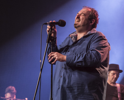 Nach einer kurzen Umbauphase betraten dann die “BluesBones“ die Bühne, ein fünfköpfiges Blues Ensemble aus Leuven / Belgien. Sie spielen alle Varianten des Blues, von den Traditionals bis zum Blues Rock. Ihre Besonderheit ist, dass sie fast gar keine Covers in ihrem Programm haben, sie stützen sich fast ausschließlich auf Eigenkompositionen. Bei den Kompositionen ist Sänger Nico de Cock zumeist für die Texte zuständig, wohingegen sich Edwin Risbourg ( Hammond Orgel ) und Stef Paglia ( Lead – Guitar ) sich um die Melodieführung und die Instrumentalisierung kümmern. Hinzu kommen noch der Bassgitarrist Geert Boeckx und der Schlagzeuger Jens Roelandt.