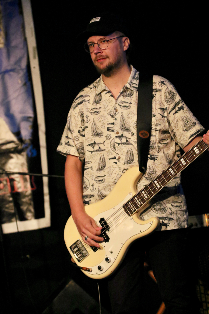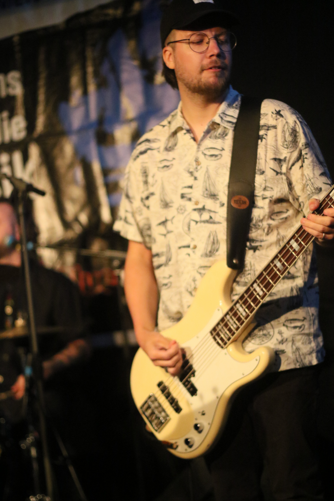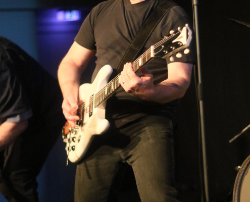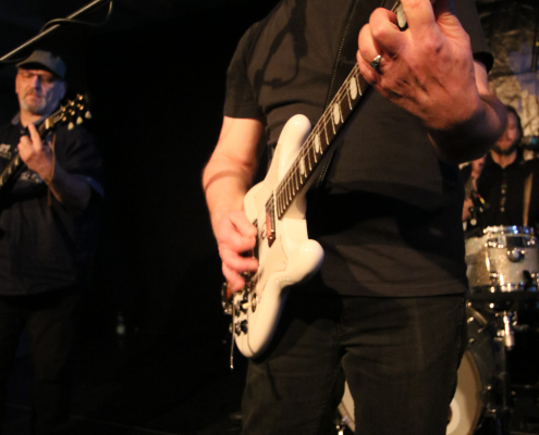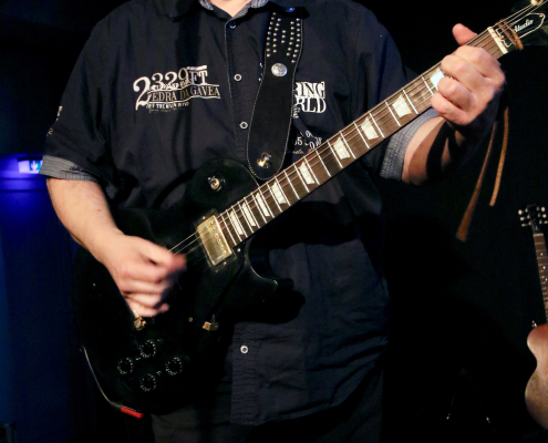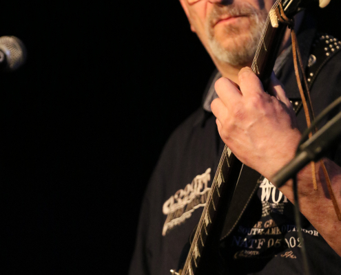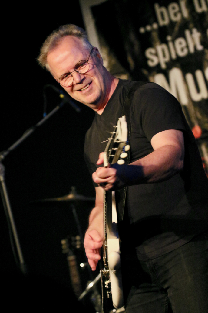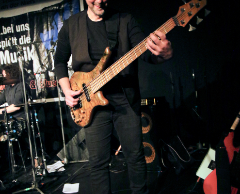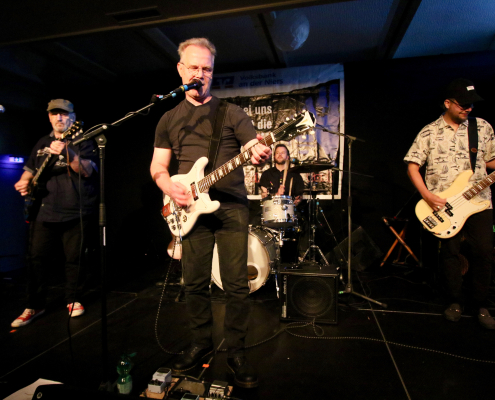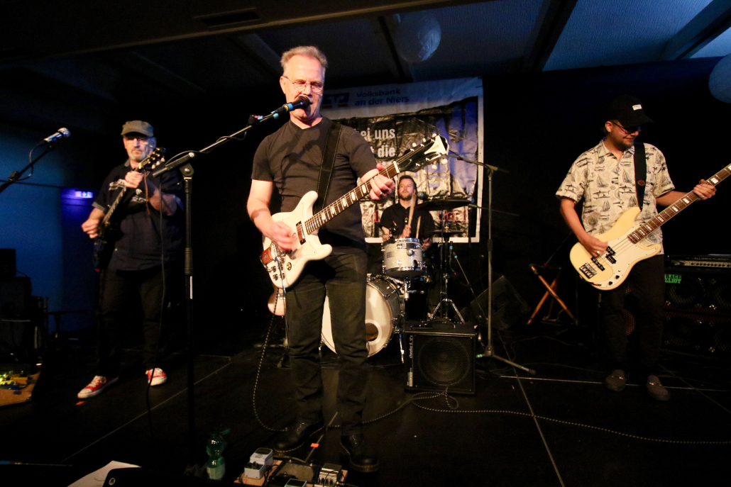 Mit „Hennesen“ schaffte es wieder einmal eine Gelderner Band, die Bühne im Gasoline Blues Club an der Dieselstraße zu bespielen. Wie schon bei einigen „supporting acts“ zuvor, ist der Blues nicht die Hauptquelle ihrer musikalischen performance. Aber die 12 Songs, die Hennesen in der Besetzung Michael Hennesen (Gitarre/Gesang), Christoph Küppers ( Gitarre/Gesang), Clemens Hennesen (Bass) und Martin Hennesen (Schlagzeug/Gesang) zum Auftakt des Abends präsentierten, waren allesamt flotte Rock n’Roll Stücke, mit prägnanten Melodiebögen und einem erdigem Groove. Hennesens Musik kam beim Publikum gut an, sie wurden mit starkem Applaus von der Bühne verabschiedet. Was „Hennesen“ im Vergleich zu anderen Bands aus der Umgebung unterscheidet, ist die Tatsache, dass sie von Anfang bis Ende nur selbst komponierte Stücke spielen, ein Cover wird man bei ihnen so schnell nicht finden. Bandleader Michael Hennesen ist schon seit mehr als 30 Jahren als Rockmusiker aktiv, er startete bei „Ion Tichy“ als Schlagzeuger, bevor er dann bei seiner nächsten Band, „Kook“, auf die Gitarre wechselte. Jetzt, bei „Hennesen“, teilt er sich die Gitarren – Aufgaben mit Christoph Küppers, der für Soli und Melodiebögen zuständig ist, wohingegen Michael sich mehr um die Akkorde kümmert. Seine Söhne Martin und Clemens sorgen an Bass und Schlagzeug für eine handwerklich saubere rhythmische Untermalung.