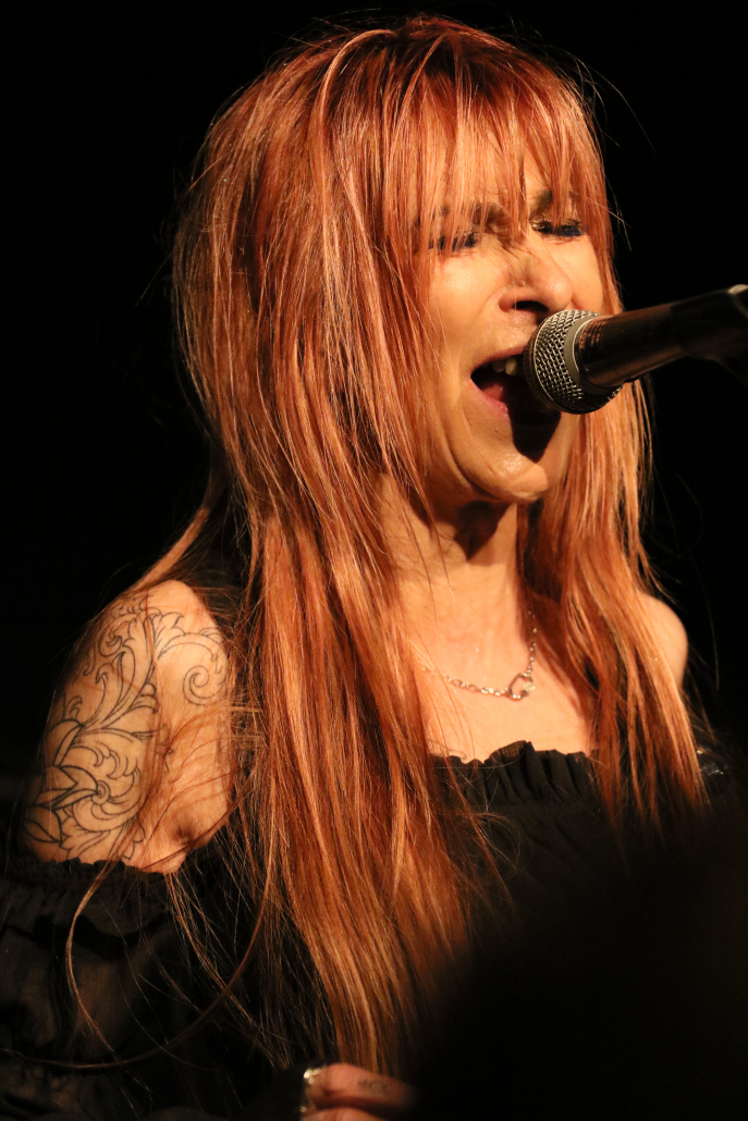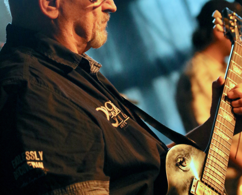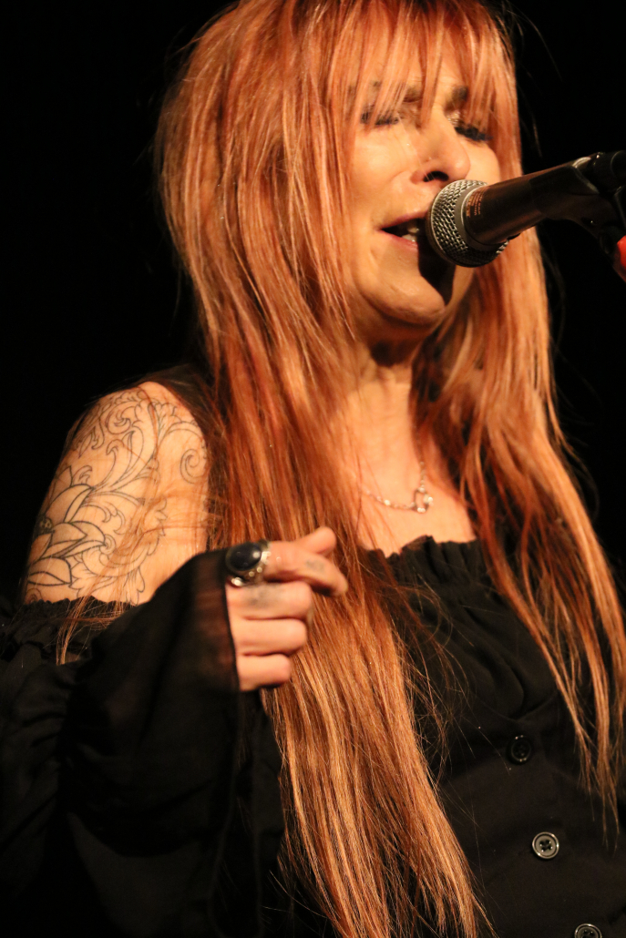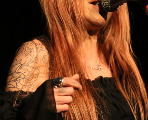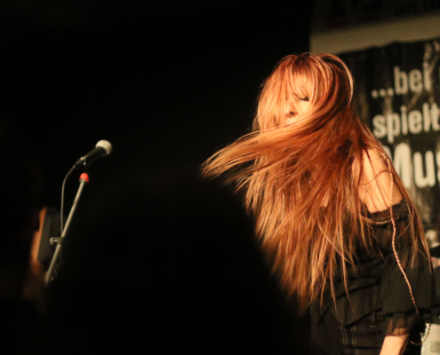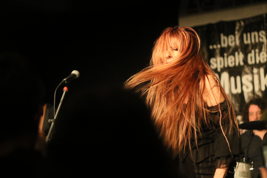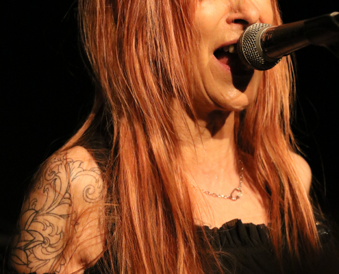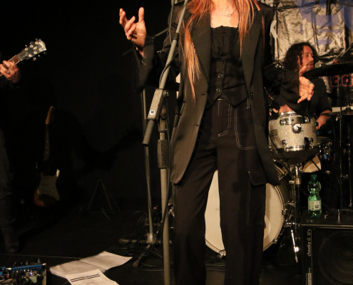 In ihrem 2 – stündigen Auftritt auf der Gelderner Bühne überwogen die Stücke, die Véronique in Zusammenarbeit mit ihren 3 Mitstreitern selbst komponiert hat. Die ersten beiden Songs gaben schon mal die klassische Blues Rock Richtung vor : „Swing Down“ und „Big Black Mama“. Dann folgte ein erster Höhepunkt mit „Be A Man“, dem Song, der den Titel für ihr 3. Album hergab. Titel Nummer 4 bot dann erstmals eine Coverversion, allerdings sehr individuell ausgestaltet : es handelte sich um „Preacher Man Blues“ von Gary Moore. Zum Abschluss der 1, Hälfte ihres Auftritts bot Véronique Gayot dann einen tiefen Einblick in ihre Variationsbreite : in „Let’s Go Crazy“ bot sie eine wilde „Fast-Blues“ Nummer, die das Publikum vor der Bühne zu wilden Tänzen animierte, wohingegen sie anschließend mit „In the Hand of the Blues“ eine klassische „Slow-Blues“ Nummer brachte, die die Stimmung im Saal komplett drehte und eine melancholisch – meditative Note hervor rief. Der Applaus zum Ende der ersten Konzerthälfte war schon euphorisch-begeistert zu nennen.