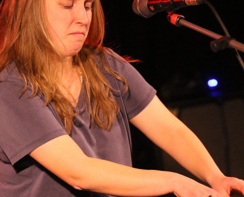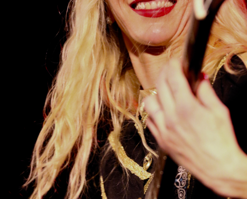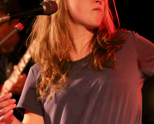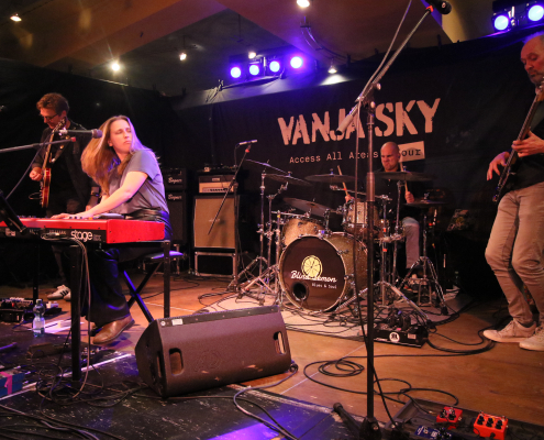 Die Band um die Frontfrau zeigte gleich zu Beginn, wo die Blues-Glocken hingen. Hoch in der Dynamik und mit einer klasse Johannes Hoffmann-Rhythmik ging es zur Eröffnung des Auftritts lautstark in die erste Runde.
