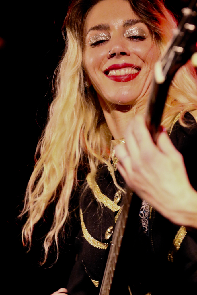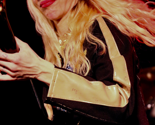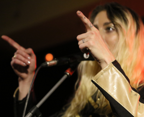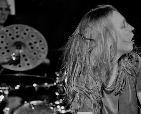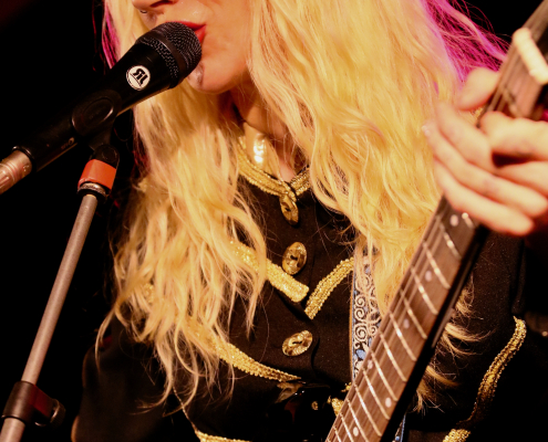 Eine der längeren Nummern war „Run Away“. Ein Song, für den Vanja Sky eine akustische Gitarre schulterte. Im von ihr gespielten Intro trat ihr beseelter Gesang besonders in den Vordergrund. Für diese emotionale Ballade, die später ordentlich Fahrt aufnahm und teiweise im Country Blues mündete, wechselte die Protagonistin zur schwarzen E-Gitarre und kreierte gemeinsam mit Guenter Haas einen feinen Twin-Sound auf zwölf Saiten.