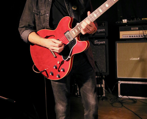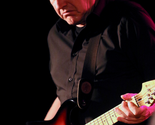 Guenter Haas. Er sorgte für so manches Glanzlicht. Seine Soli waren das weite Land der Ideen und spielerischen Höhepunkte.Auch er hielt die tolle Stimmung bei der Live-Party im Joker Rock & Blues Club stets hoch. Guenter Haas veredelte die Songs mit seinen Alleingängen und es war ein Erlebnis, seine Finger über das Fretboard tanzen zu sehen.